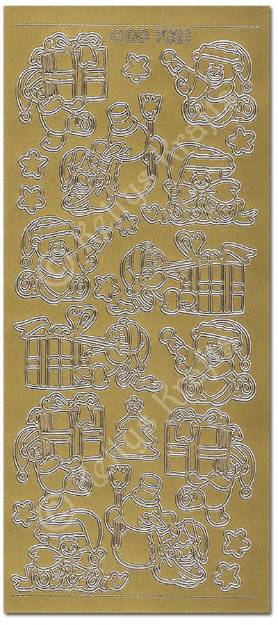 Christmas Teddy Bears, Gold Peel Off Stickers (1 sheet)