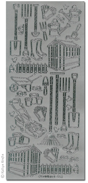 Gardening Theme, Silver Peel Off Stickers (1 sheet)