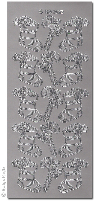 (image for) Xmas Stockings + Candy Canes, Silver Peel Off Stickers (1 sheet)