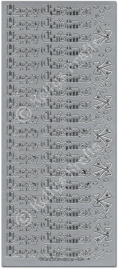 Happy Christmas Words, Silver Peel Off Stickers (1 sheet)