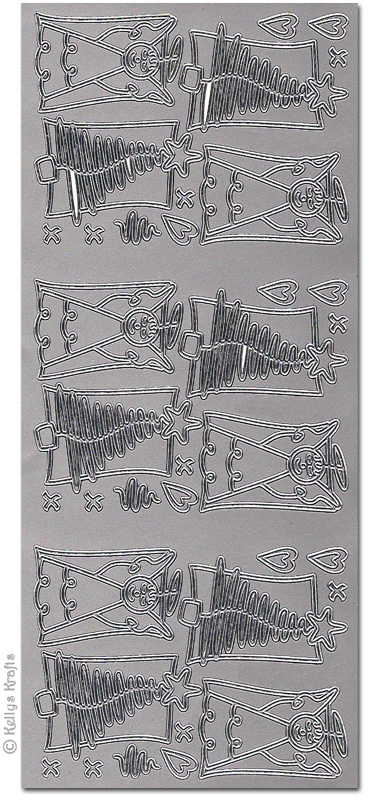 Christmas Trees + Angels, Silver Peel Off Stickers (1 sheet)
