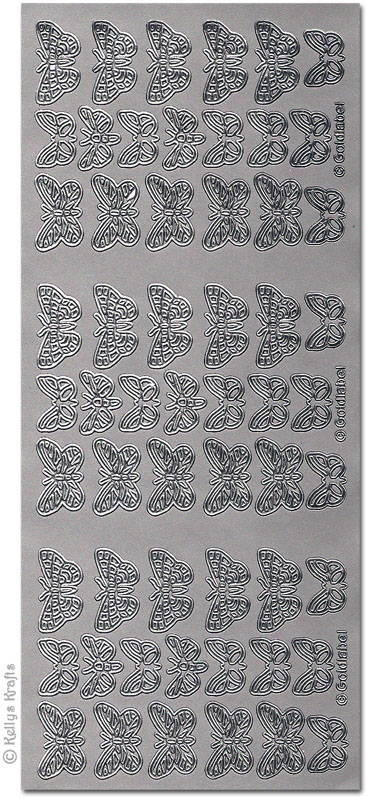 Small Butterflies, Silver Peel Off Stickers (1 sheet)