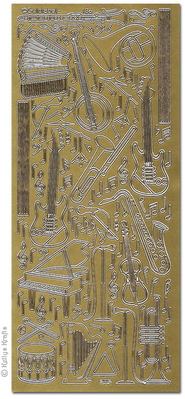 Musical Instruments, Gold Peel Off Stickers (1 sheet)
