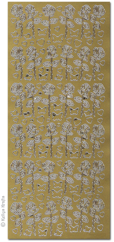 Roses Flowers, Gold Peel Off Stickers (1 sheet)