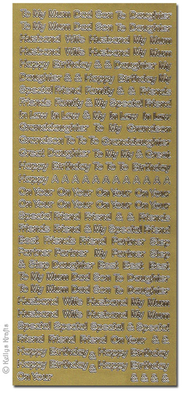 Mixed Relatives & Birthday, Gold Peel Off Stickers (1 sheet)