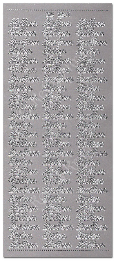 Mother/Father & Brother/Sister, Silver Peel Off Stickers (1 sheet)