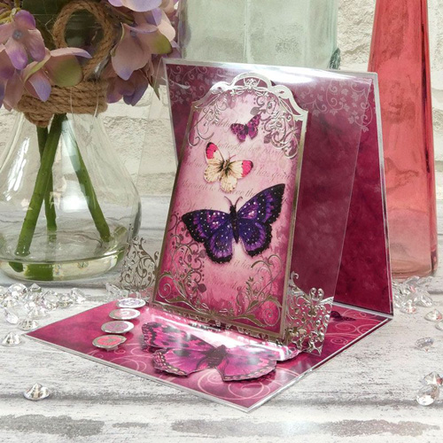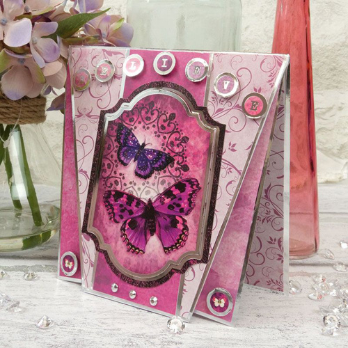 The sheet of card toppers contains icons, captions and sentiments, with stunning silver highlights.