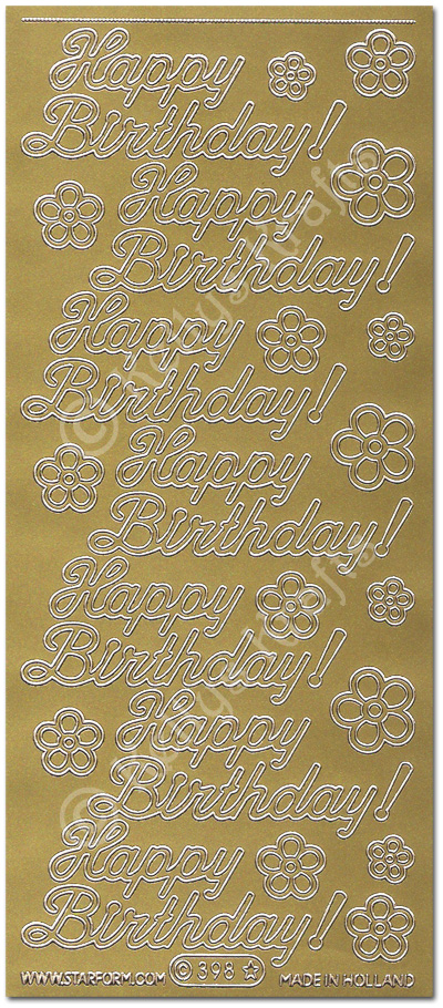 Happy Birthday, Gold Peel Off Stickers (1 sheet)