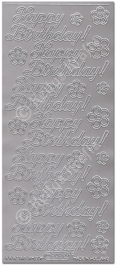 Happy Birthday, Silver Peel Off Stickers (1 sheet)