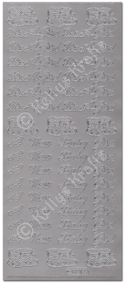 It's A Girl / A New Baby Girl, Silver Peel Off Stickers (1 sheet)