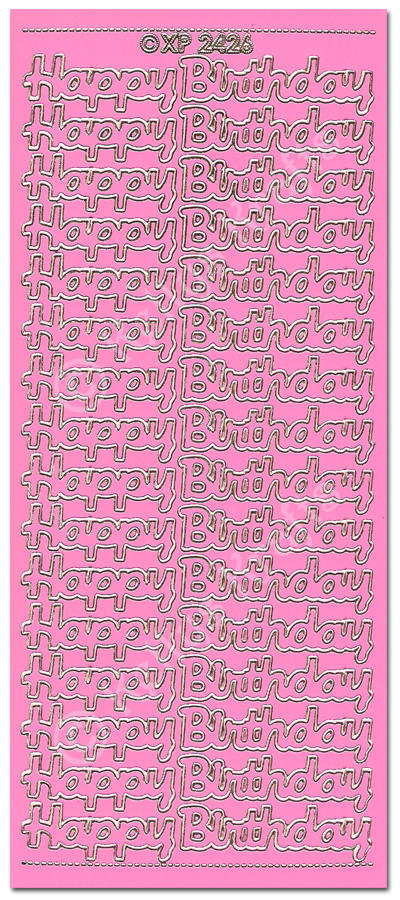 Happy Birthday, Pink Peel Off Stickers (1 sheet)