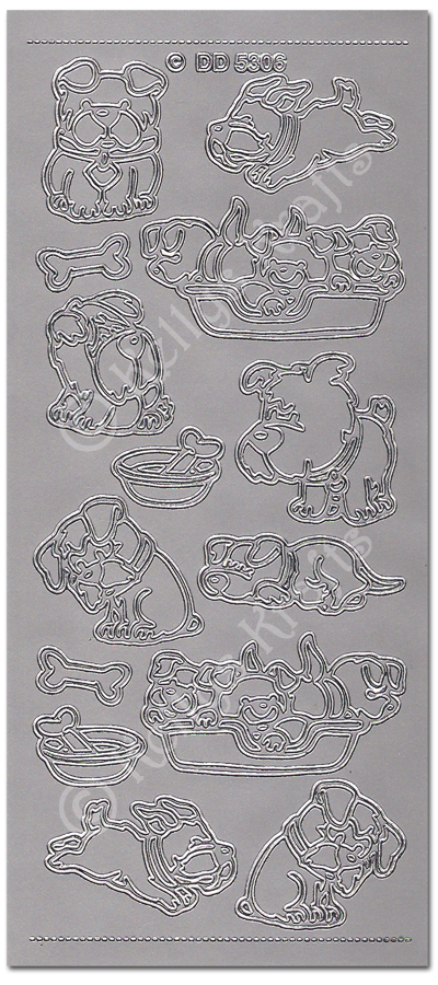 Dogs + Puppies, Silver Peel Off Stickers (1 sheet)