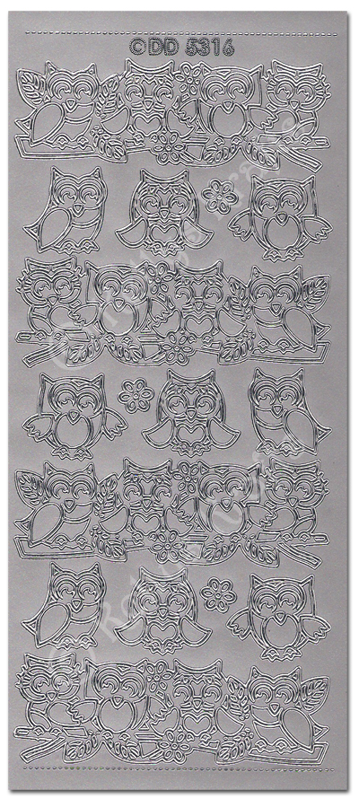 Owls, Silver Peel Off Stickers (1 sheet)