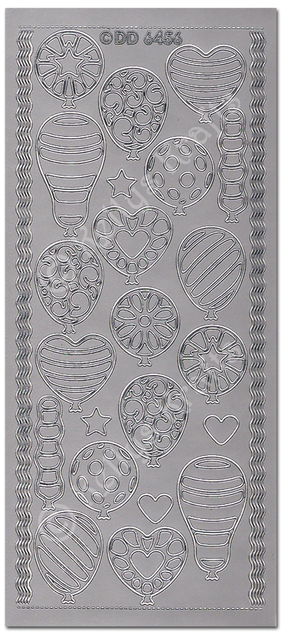 Balloons, Silver Peel Off Stickers (1 sheet)