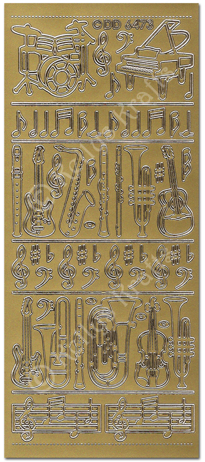 Music Instruments & Notes, Gold Peel Off Stickers (1 sheet)