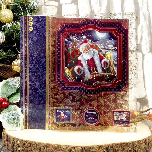 (enjoy the magic of the season, sending seasons greetings, handmade with love, have a magical christmas, lots of love, "he had a broad face and a little round belly, that shook when he laughed like a bowlful of jelly", "his eyes - how they twinkled! his dimples - how many! his cheeks were like roses... his nose like a cherry!")