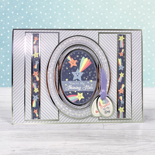 A sheet of card toppers containing icons, captions and sentiments, with stunning silver foil highlights.