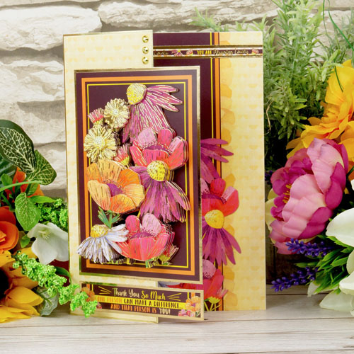 Taken from the "Flourishing Florals" collection, this is a deco-large (large decoupage) set. The base layer of the decoupage item is a staggering 15cm x 10cm. The rest of the A5 base-layer sheet is filled with extra elements (such as sentiments, captions, and border strips). The A4 decoupage sheet has all the layers to build up onto your base layer. The sheet of printed cardstock coordinates beautifully with the rest of the set.