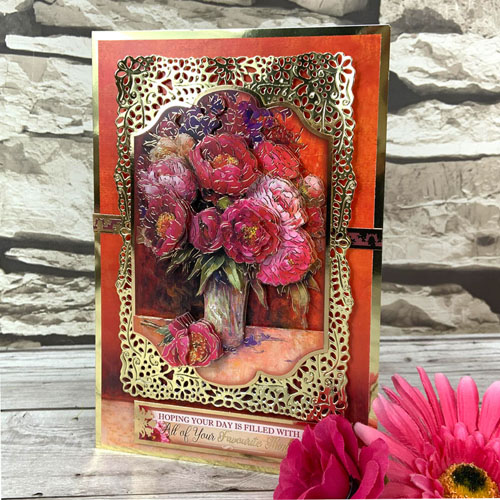 Taken from the "Flourishing Florals" collection, this is a deco-large (large decoupage) set. The base layer of the decoupage item is a staggering 14cm x 10cm. The rest of the A5 base-layer sheet is filled with extra elements (such as sentiments, captions, and border strips). The A4 decoupage sheet has all the layers to build up onto your base layer. The sheet of printed cardstock coordinates beautifully with the rest of the set.