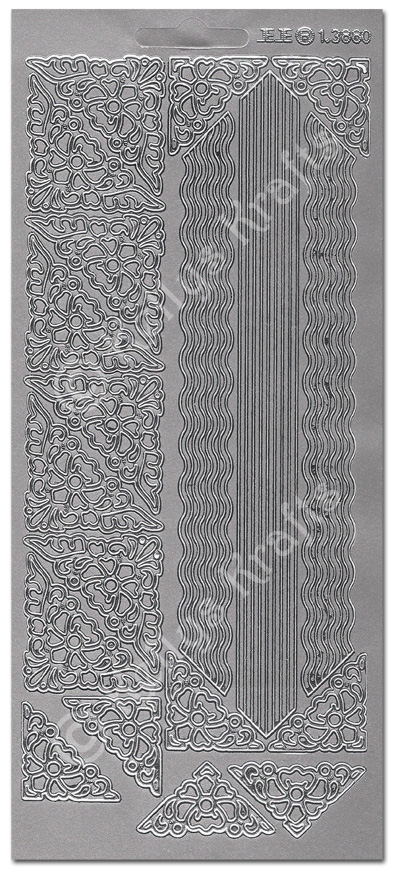 Decorative Corners & Borders, Silver Peel Off Stickers (1 sheet)