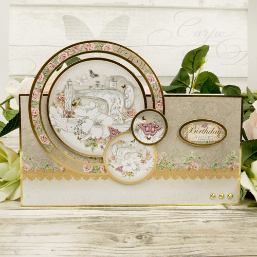 The sheet of card toppers contains icons, captions and sentiments, with stunning gold highlights.