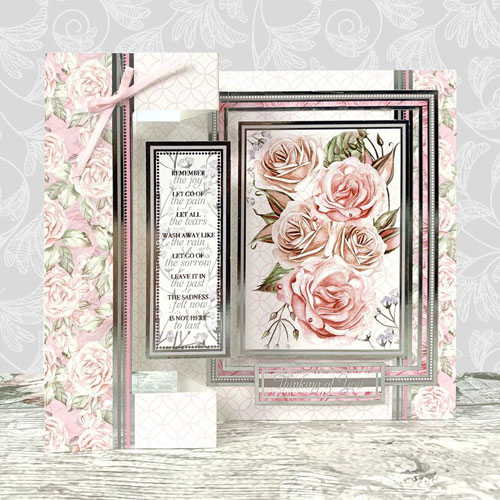 The sheet of card toppers contains icons, captions and sentiments, with stunning silver highlights.