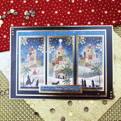 The sheet of card toppers contains icons, captions and sentiments, with stunning gold foil highlights.
