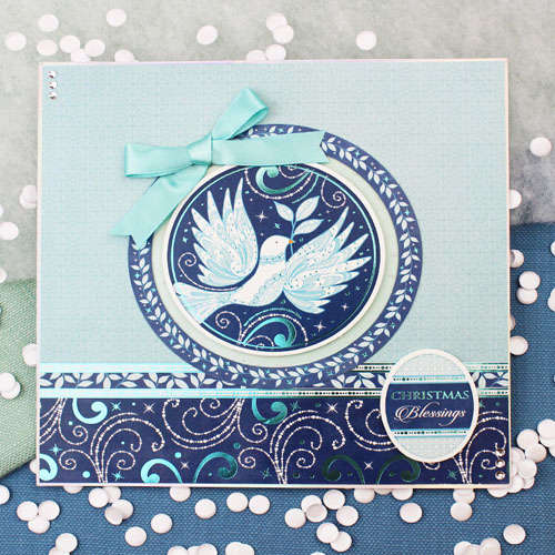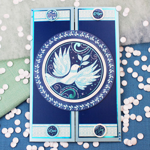The sheet of card toppers contains icons, captions and sentiments, with stunning light blue foil highlights.