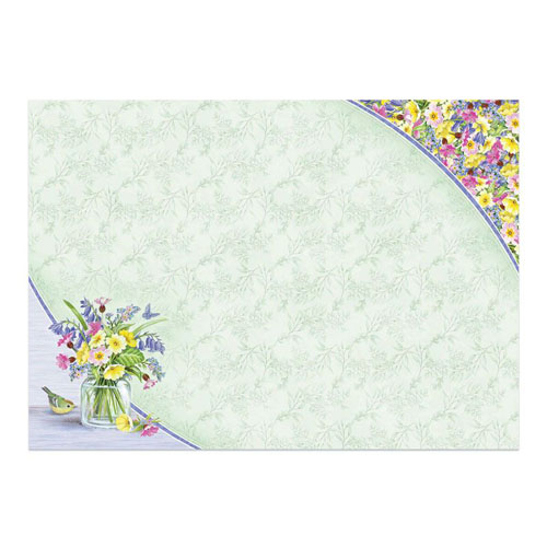 Taken from the "Springtime Wishes" collection, this is a deco-large (large decoupage) set. The base layer of the decoupage item is a staggering 11.1cm diameter. The rest of the A5 base-layer sheet is filled with extra elements (such as sentiments, captions, and border strips). The A4 decoupage sheet has all the layers to build up onto your base layer. The sheet of printed cardstock coordinates beautifully with the rest of the set.