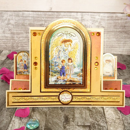 The sheet of card toppers contains icons, captions and sentiments, with stunning gold highlights.