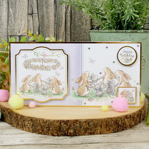Theme: bunny's special day, acorn wood (happy hopping)... hoppy birthday, with love from all the family, well done