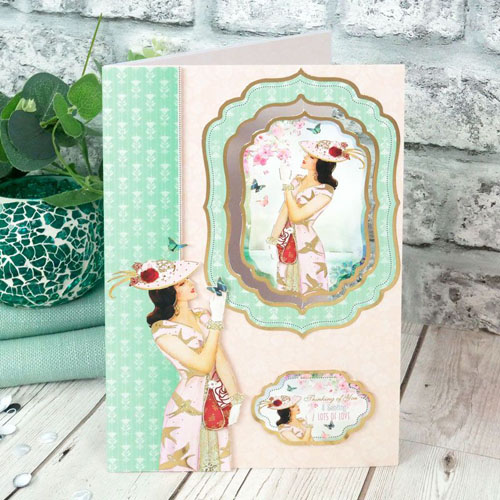 You're a Limited Edition - features ladies stylish shopping trip and enjoying the spring blossom on a wistful walk through the park. One lady is accompanied by her dog as she carries her hat boxes and the others are admiring the beautiful blossoming flowers. With sentiments: to a beautiful friend, thanks so much you're a limited edition, thinking of you & sending lots of love, just for you, on your birthday.