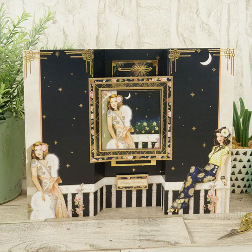 Fabulous detailed artwork with an array of different deco scenes throughout, with gorgeous depth and dimension. The elegant ladies' luxurious world has gold foiling which works beautifully with the Art-Deco style.