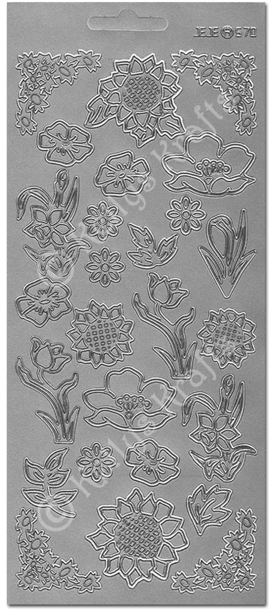 Various Flowers, Silver Peel Off Stickers (1 sheet)