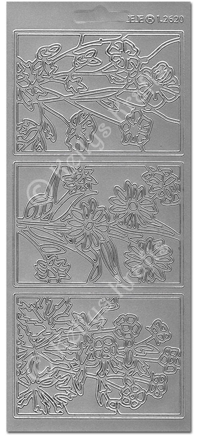 Stained Glass Flowers, Silver Peel Off Stickers (1 sheet)