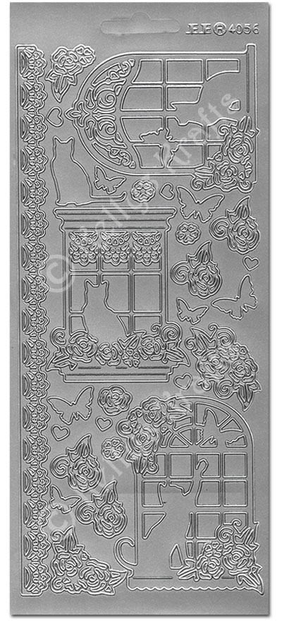 Cat Window Scene, Silver Peel Off Stickers (1 sheet)