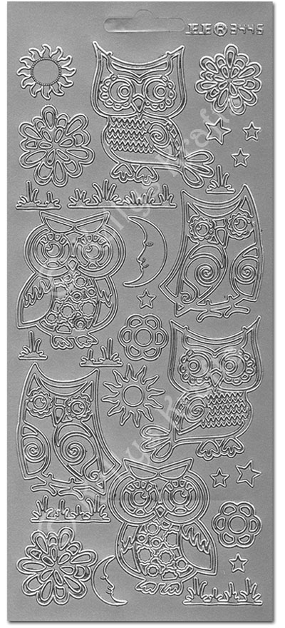 (image for) Owls, Silver Peel Off Stickers (1 sheet)