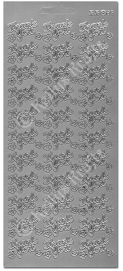 Thank You, Silver Peel Off Stickers (1 sheet)