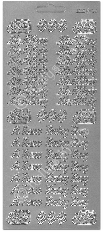 It's A Boy / A New Baby Boy, Silver Peel Off Stickers (1 sheet)