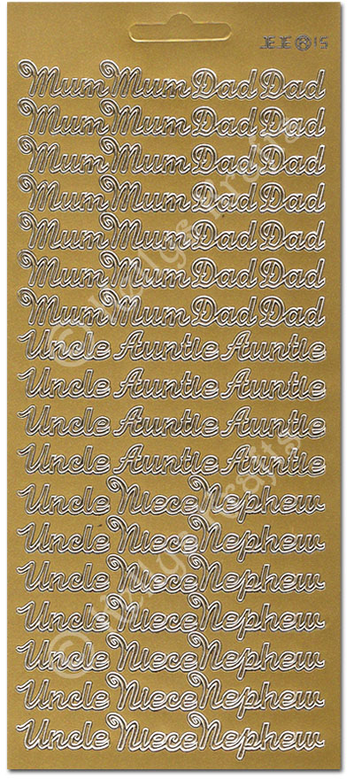 Mum/Dad, Auntie/Uncle, Niece/Nephew, Gold Peel Off Stickers (1 sheet)