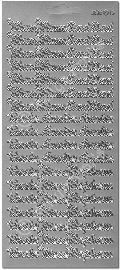 (image for) Mum/Dad, Auntie/Uncle, Niece/Nephew, Silver Peel Off Stickers (1 sheet)
