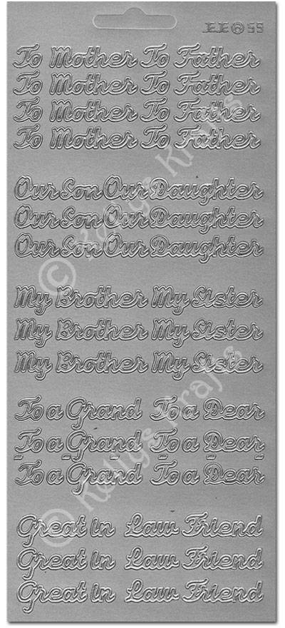 Mother/Father, Son/Daughter, Bro/Sis, Silver Peel Off Stickers (1 sheet)