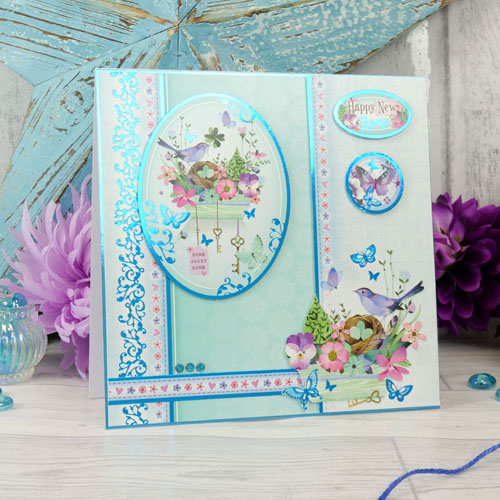 Theme: butterfly blue (in the garden)... good luck, happy new home, with love & best wishes
