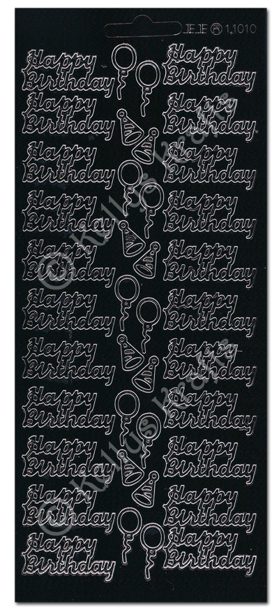 Happy Birthday, Black Peel Off Stickers (1 sheet)