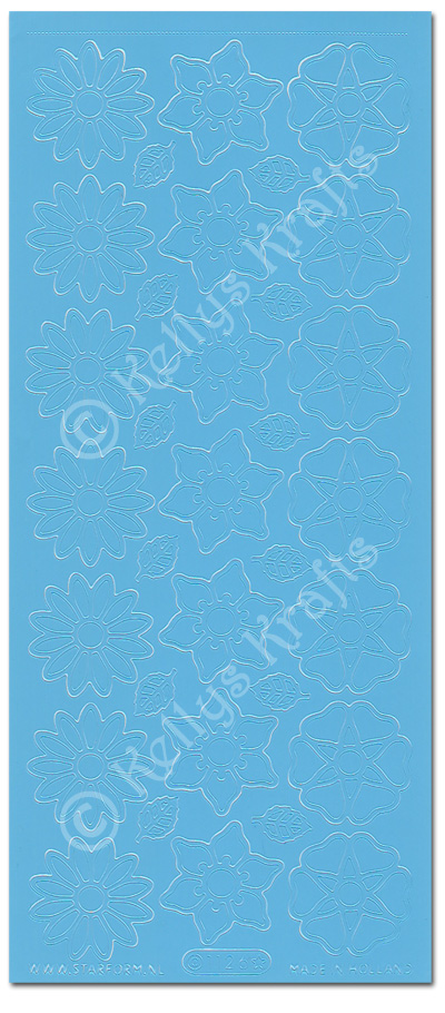 Flower/Daisy Heads & Leaves, Blue Peel Off Stickers (1 sheet)