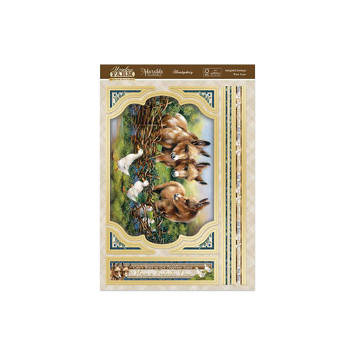 Taken from the "Meadow Farm" collection, this is a deco-large (large decoupage) set. The base layer of the decoupage item is a staggering 14.2cm x 10.1cm. The rest of the A5 base-layer sheet is filled with extra elements (such as sentiments, captions, and border strips). The A4 decoupage sheet has all the layers to build up onto your base layer. The sheet of printed cardstock coordinates beautifully with the rest of the set.