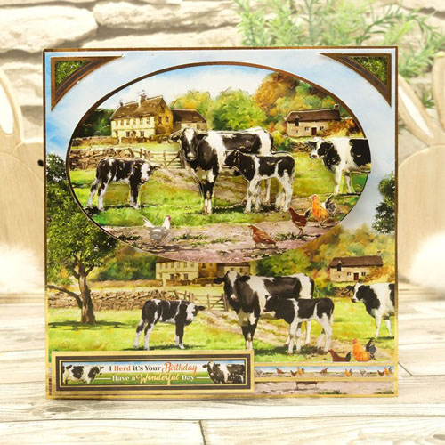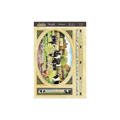 Taken from the "Meadow Farm" collection, this is a deco-large (large decoupage) set. The base layer of the decoupage item is a staggering 15.2cm x 10.1cm. The rest of the A5 base-layer sheet is filled with extra elements (such as sentiments, captions, and border strips). The A4 decoupage sheet has all the layers to build up onto your base layer. The sheet of printed cardstock coordinates beautifully with the rest of the set.