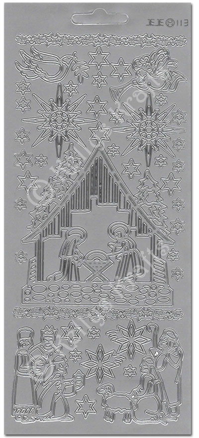 Nativity Christmas Scenes, Silver Peel Off Stickers (1 sheet)