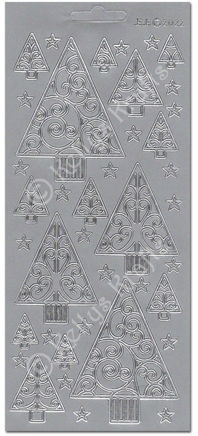 Christmas Trees, Silver Peel Off Stickers (1 sheet)
