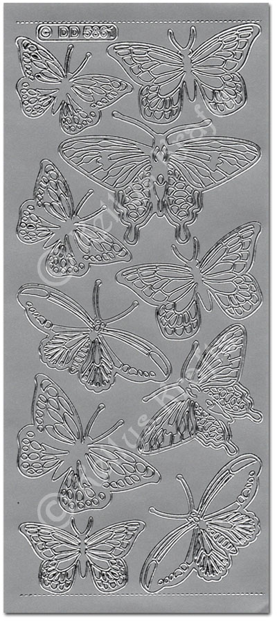 (image for) Large Butterflies, Silver Peel Off Stickers (1 sheet)